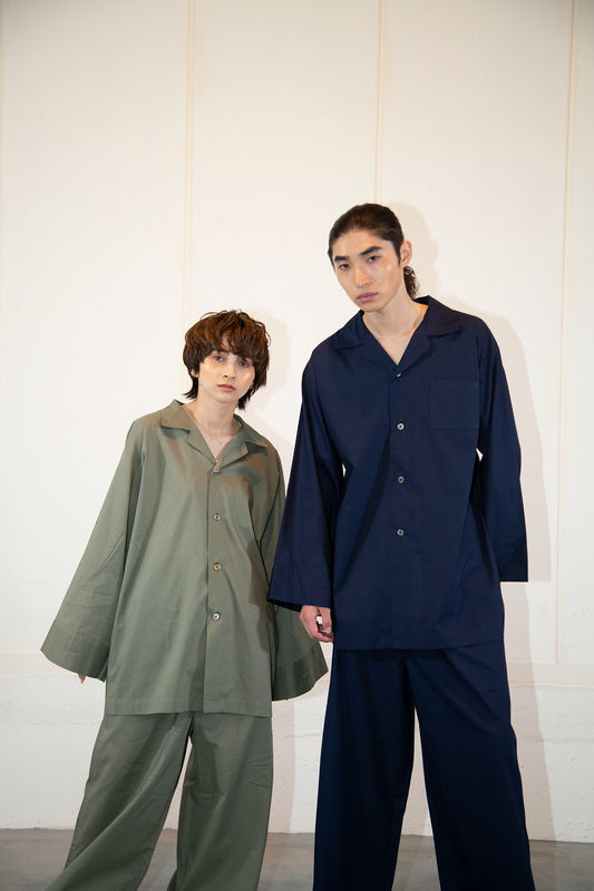 パンツはゆったりとしたワイドシルエット、裾に向かって若干のテーパードがかかる仕様にしました。